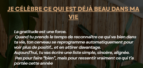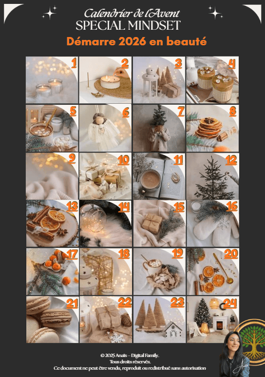 J’ai créé ce calendrier parce que moi aussi j’ai connu les fins d’année où tu te sens perdue, fatiguée, sans vision.